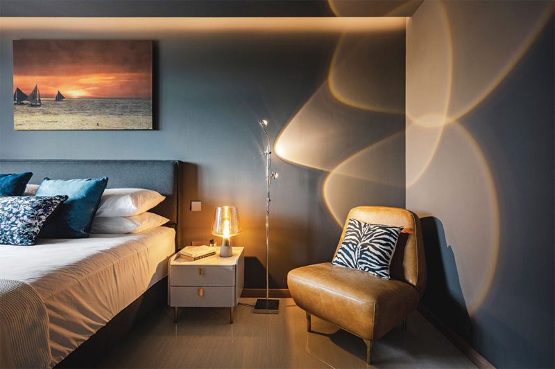 Рабочая формула: «Мягкие тени + теплая температура света + несколько сценариев = красивый и стильный интерьер спальни».